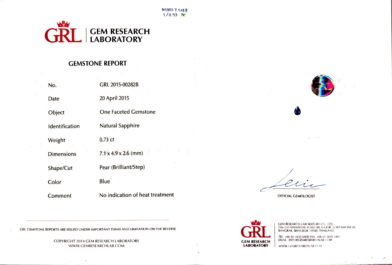 Weight 0.73ct