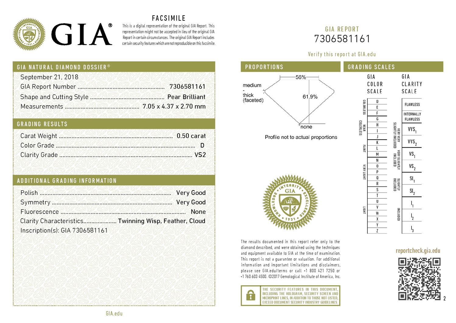 0.50 ct Pear Shape Natural Diamond D / VS2