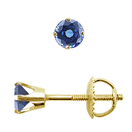 14K Yellow Gold Crown Stud Earrings : 0.25 cttw Blue Sapphires