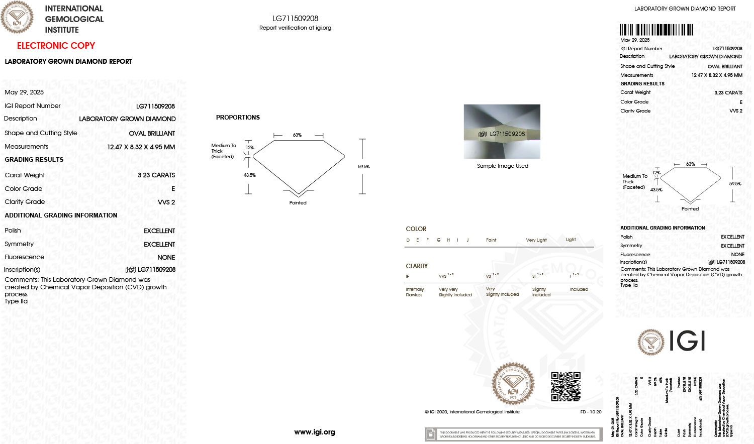 3.23 ct Oval Lab Grown Diamond E / VVS2